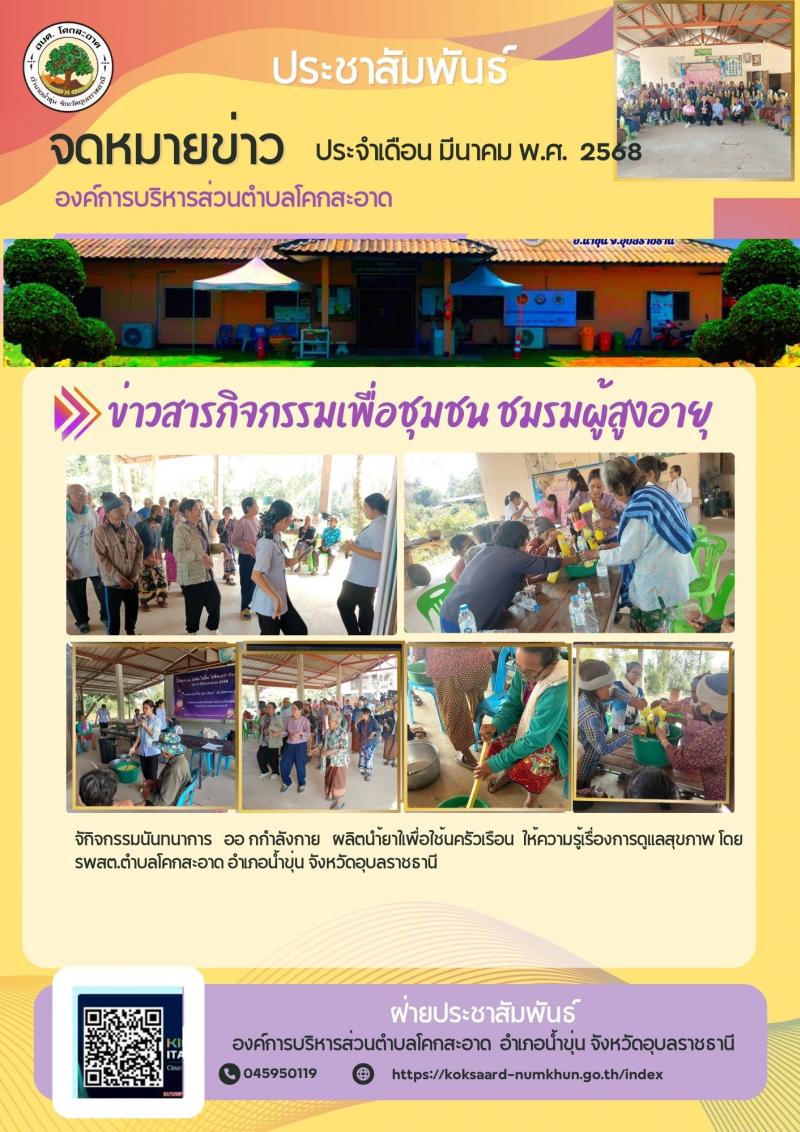 กิจกรรมตามนโยบาย โคกสะอาด ไม่ทิ้งใครไว้ข้างหลัง โดยองค์การบริหารส่วนตำบลโคกสะอาด ร่วมกับ โรงพยาบาลส่งเสริมสุขภาพตำบลโคกสะอาด และชุมชน ร่วมขับเคลื่อนการดำเนินงาน เพื่อเตรียมความพร้อมรองรับสังคมผู้สูงอายุ