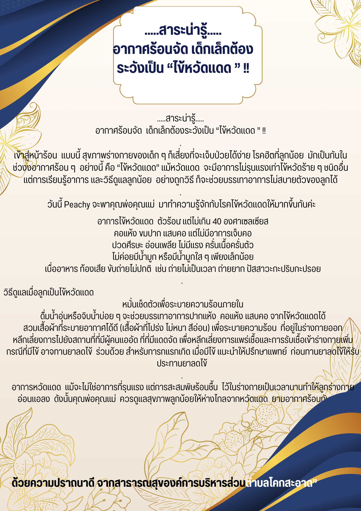 สาระน่ารู้ ดูแลสุขภาพ ด้วยความปราถนาดี จาก นายชัยชนะ อรจันทร์ นายกองค์การบริหารส่วนตำบลโคกสะอาด และคณะผู้บริหาร