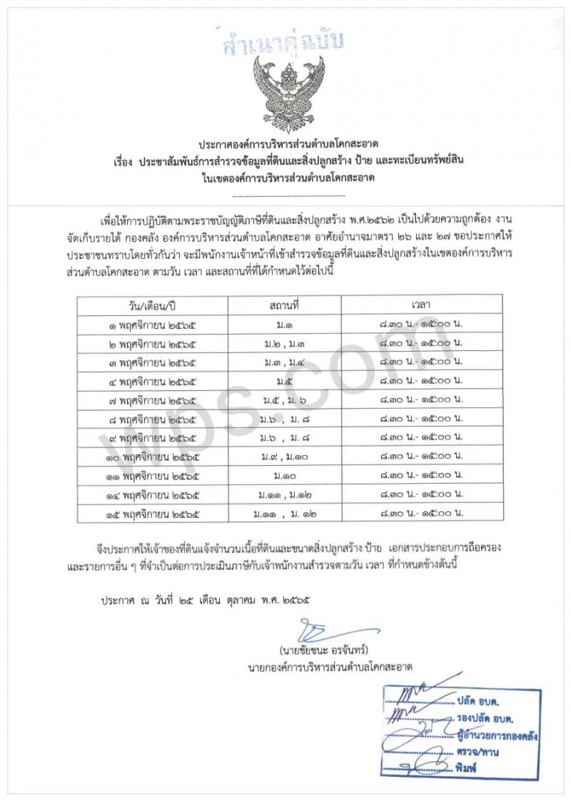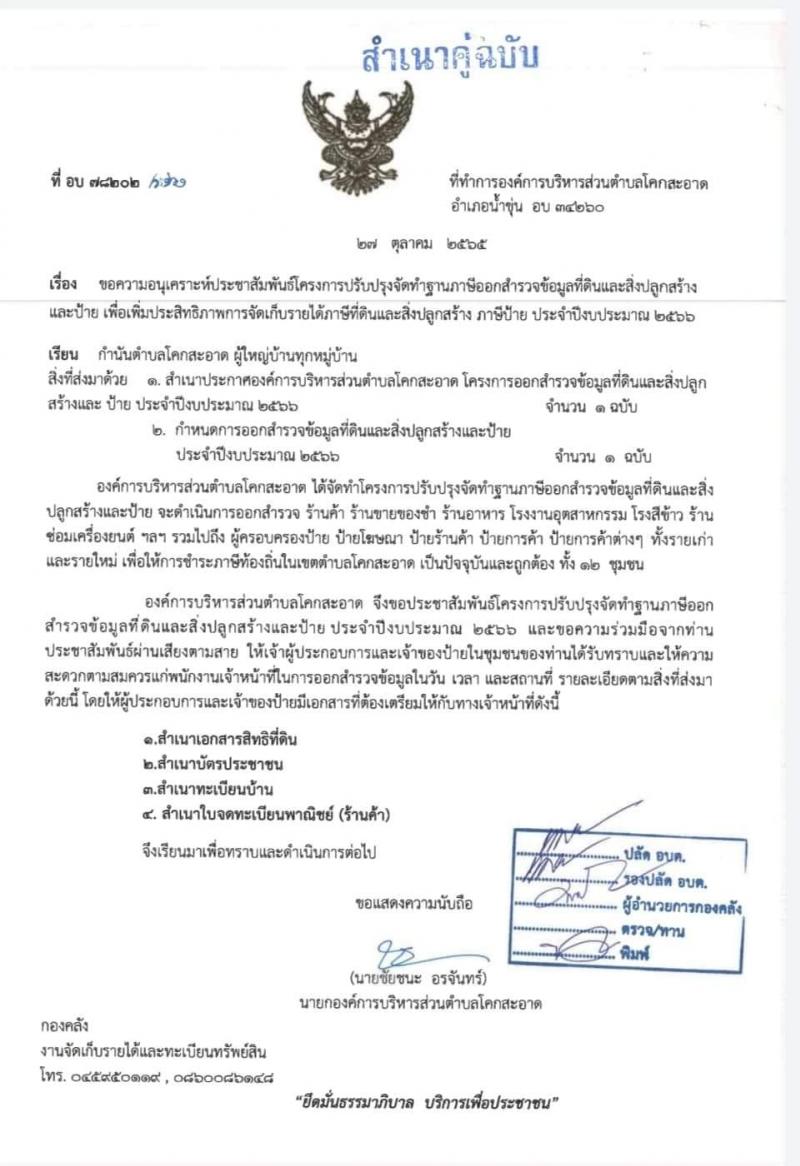 นายชัยชนะ อรจันทร์ นายกองค์การบริหารส่วนตำบลโคกสะอาด ได้มอบหมาย ให้ กองคลัง สำนักปลัด ฝ่ายเจ้าพนักงานป้องกันบรรเทาสาธารณภัย พร้อมทีมงาน ออกสำรวจที่ดินและสิ่งก่อสร้าง และป้าย