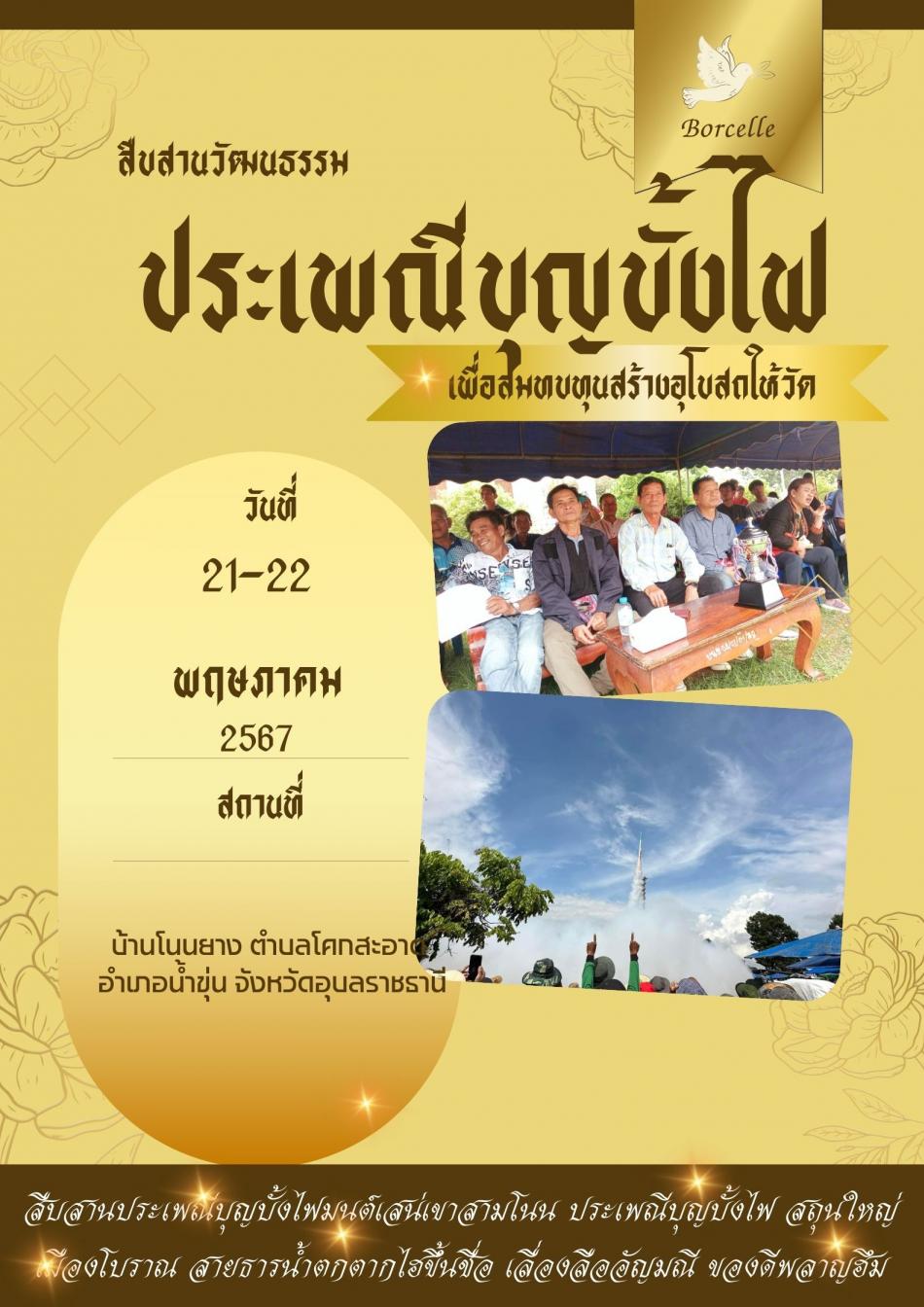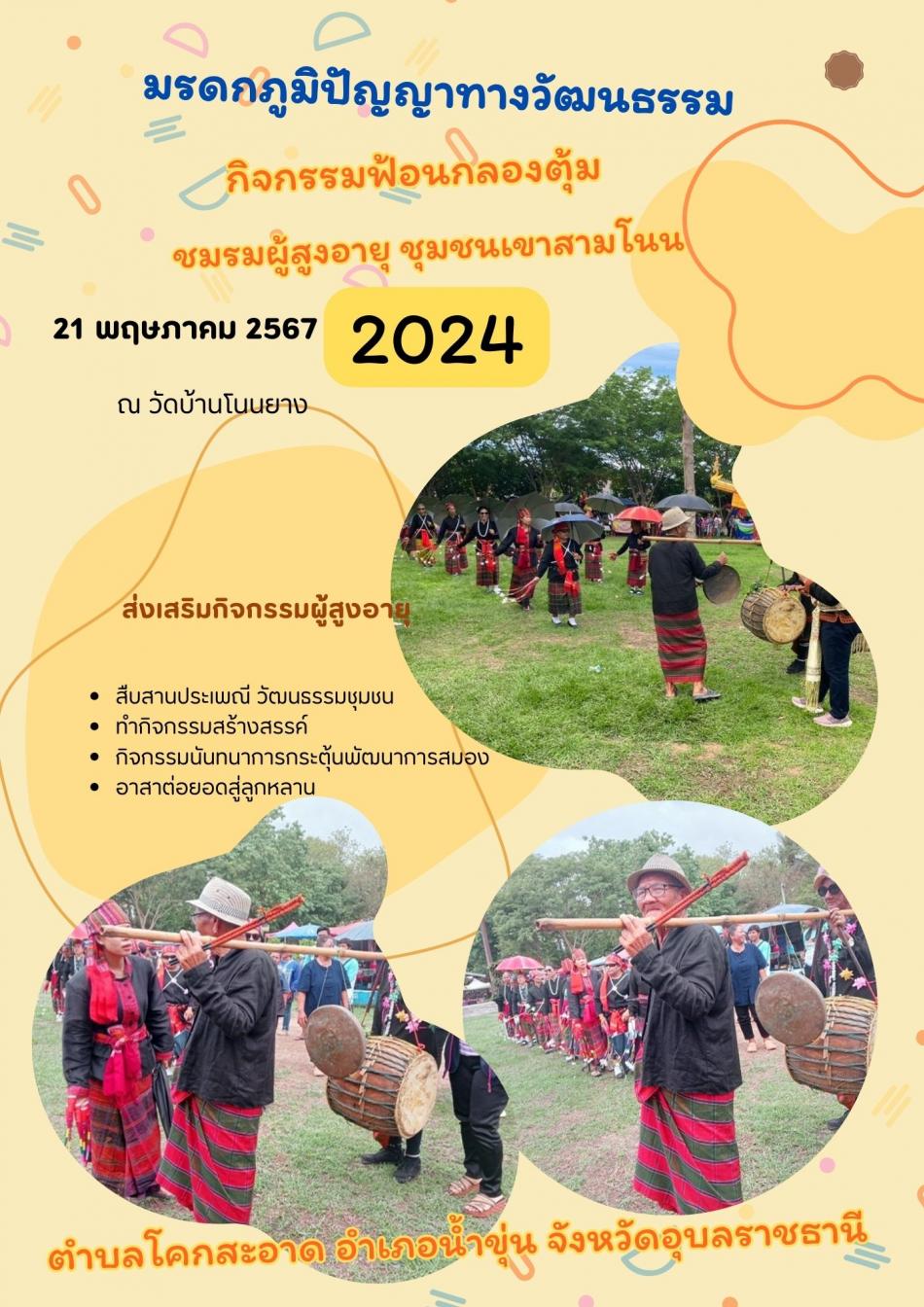 วันที่ 21 พฤษภาคม 2567 ชมรมผู้สูงอายุชุมชนเขาสามโนน ร่วมกับสภาวัฒนธรรมตำบลโคกสะอาด อำเภอน้ำขุ่น จังหวัดอุบลราชธานี ได้ดำเนินกิจกรรมสืบสานวัฒนธรรมประเพณี [22 พฤษภาคม 2567]